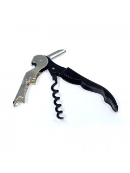 Couteau sommelier « PULLTAP'S » 3 pièces (lame micro-dentée, double levier avec décapsuleur, mèche noire),manche 12 cm noir Zinfandel.- Le premier cran permet d'extraire le bouchon aux trois quarts (la mèche restant toujours dans l'axe du goulot). - Avec le second cran, on dégage sans difficulté...