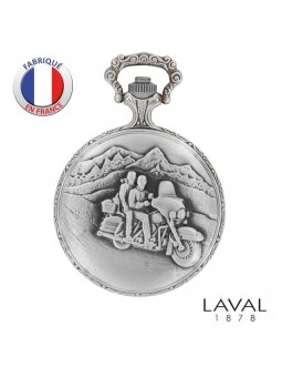 Montre de poche avec couvercle ornementée par une Moto Marque française LAVAL Paris Cette montre de poche possède un mouvement quartz ISA 1198 de haute qualité Garantie 2 ans Livré avec sa chaîne en coffret Personnalisez un texte gravé à l'intérieur ou une photo couleur.