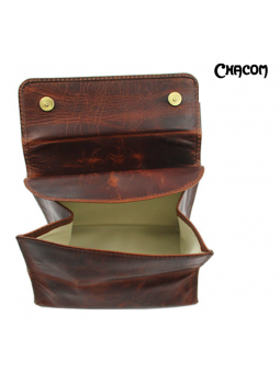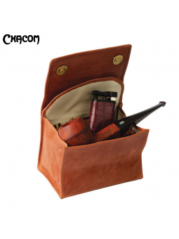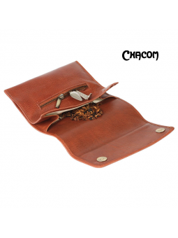 La blague à tabac Chacom CC020 cuir compacte - Couleur havane Poche principale , dotée d'une doublure en latex synthétique à deux boutons pressions magnétiques. Poche zippée située à l'arrière pour couteau - fumeur ou briquet Personnalisez par de belles initiales- Un prénom - Un message