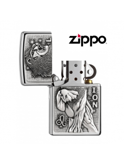 Zippo avec l'emblème du signe zodiaque Lion en relief. Briquet Zodiac Emblem Lion étoilé verso du zippo Chromé Brossé / Brillant Personnalisez ce zippo par un texte, logo ou une image gravée. Livré en coffret Compatible avec les différents inserts: Arc Insert - Butane Single Flame - Butane...