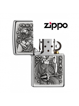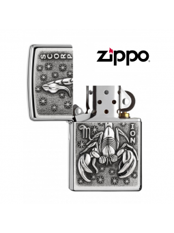 Zippo avec l'emblème du signe zodiaque Scorpion en relief. Briquet Zodiac Emblem Scorpion étoilé Le verso du zippo Chromé Brossé / Brillant Personnalisez ce zippo par un texte, logo ou une image gravée. Livré en coffret Compatible avec les différents inserts: Arc Insert - Butane Single Flame -...
