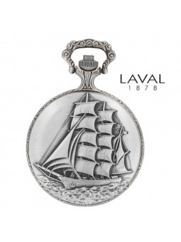 Montre de poche avec couvercle ornementée par des Voiliers Marque française LAVAL Paris Cette montre de poche possède un mouvement quartz ISA 1198 de haute qualité Garantie 2 ans Livré avec sa chaîne en coffret Personnalisez un texte gravé à l'intérieur