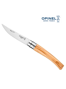 Couteau OPINEL, lame 8 cm effilée inox poli glace, manche 10 cm olivier,