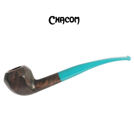 French Pipe bleu - Pipe demie courbe - Finition cirée grise - Bois de bruyère