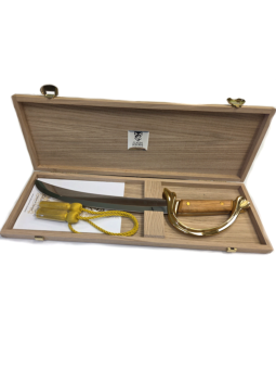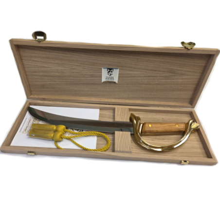 Ce sabre est livré avec son coffret rn chêne vernis et un livret sur l’art de sabrer le Champagne