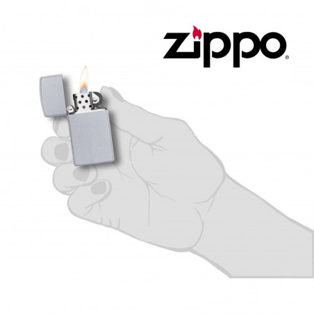 Zippo à essence de couleur chrome avec une finition satinée.