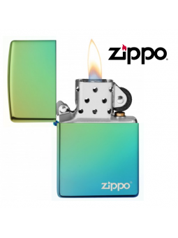 Briquet Zippo Logo - Vert bleuté finition polie miroir.