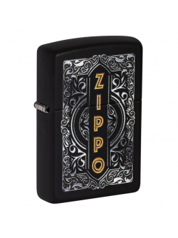 Zippo noir Matt avec impression Logo doré et motif blanc