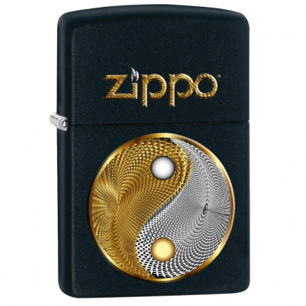 Zippo noir Matt avec impression ying et yang doré / argent