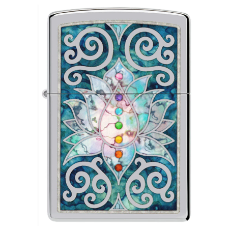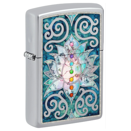 l’ancien symbole se fond dans le métal irisé de cet incroyable briquet High Polish Chrome.